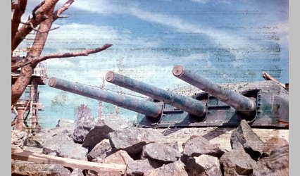 had been transported to the site. Rather interesting is how chipped the paint is, especially on the barrels, and how conspicuously the underlying red-brown primer shows.