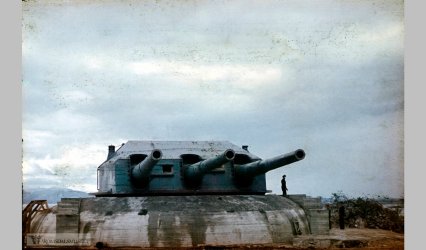 a set of period colour photographs taken while the turret was under construction, which I present below. As can be seen, the camouflage changed as