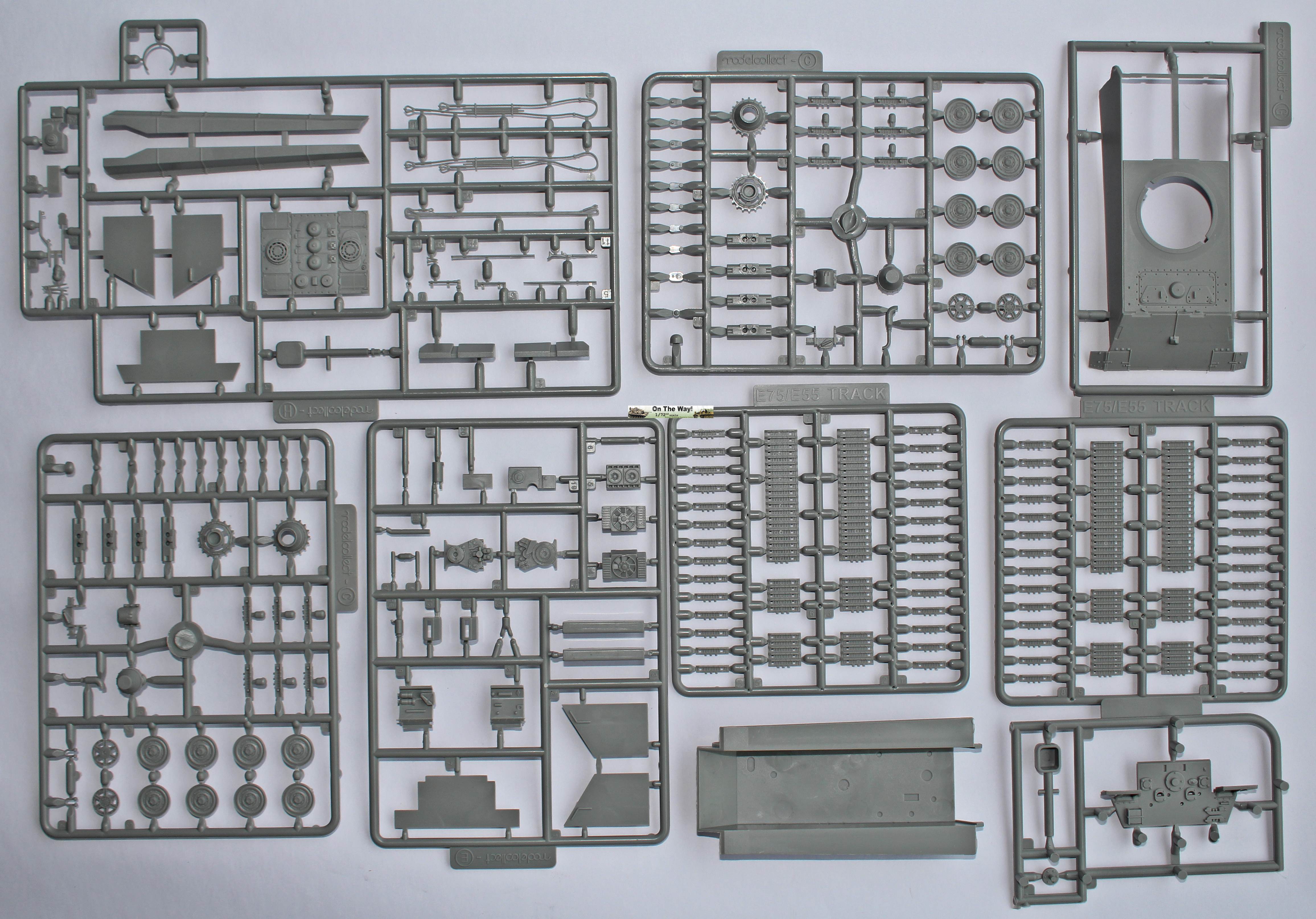 Some history It is not a shame if you have never heard of the German E-50 tank with the tower replaced by an 128 mm Flak 40. This armoured fighting vehicle is a mere creation of the Chinese modelling company Modelcollect. It is not a historical vehicle, but a so called ‘paper panzer’. The only historical part of the ‘paper panzer’ is the 128 mm Flak 40. The gun was without any doubt one of the best German anti-aircraft guns in WWII. This heavy gun could fire a shell of 26 kg as high as 35.000 feet, where it would burst apart in a deadly cloud of shrapnel. Some sources even state an altitude of 48.500 feet. This was high enough to take even the highest flying allied bombers out of the sky. Production of the Flak 40 started in 1942. By the end of the war 1.125 of these heavy anti-aircraft guns had been produced, of which 34 were double guns for use on specially designed Flaktowers. The Germans also made some attempts to give the 128 mm Flak 40 some mobility. As the power of the Luftwaffe was declining, the need grew for more powerful anti-aircraft guns to protect the Reich against the growing intensity of the allied bombings. In this way the Germans produced a specially designed trailer, but as trailer and gun weighed over 26 tons, this was not a success. In this way, it could have been an idea to put the gun on top of a E-50 hull. The German E-series was an attempt to rationalize tank production. The Germans had so many different types of tanks that logistics and maintenance were a nightmare. Besides, all these tanks and AFV’s were produced in rather small numbers. Under supervision of the Minister of War Production Albert Speer, the Germans took up the plan to simplify all this. The aim was to concentrate on six types of tanks, which would be produced in larger quantities. Each type would use as much of the same parts as the other types, thus simplifying logistics and maintenance. The new tanks would be classified as the E-range, the ‘E’ meaning ‘Einheit’ or ‘Standard’. According to their weight, the E-tanks would be: E-5, E-10, E-25, E-50, E-75 and E-100. The E-50 would have been the successor of the Panther tank. However, the war ended before any of these tanks were produced.