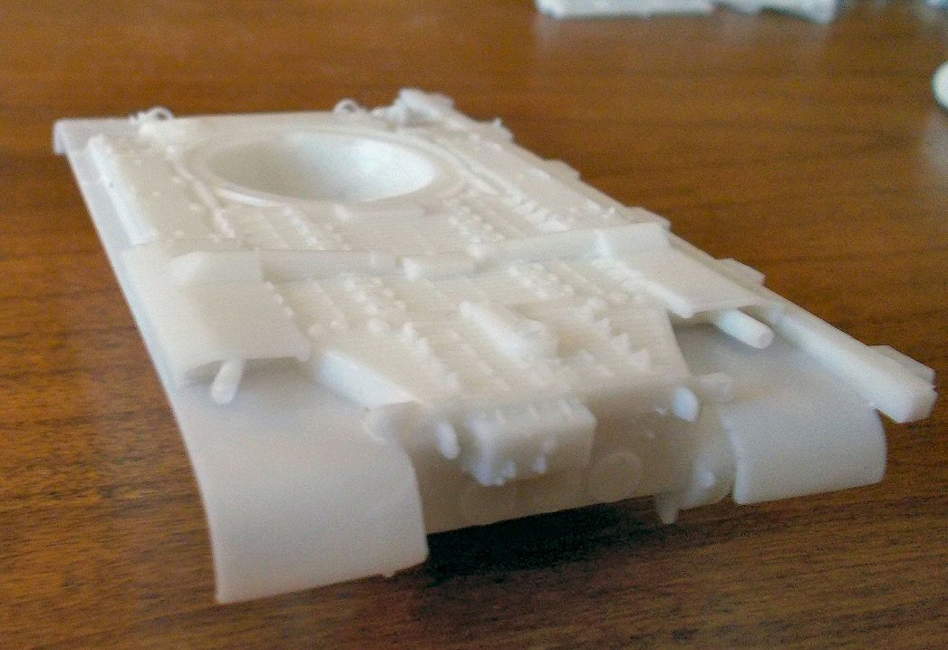 The grab bars on the turret are so thin the resin will not hold its strength. One of them crumbled to pieces in my fingers, but I attached the parts that remained since tanks with broken grab bars were not unheard of. It is possible to give the turret more of a rough cast finish by lightly shaving it with a small knife edge.