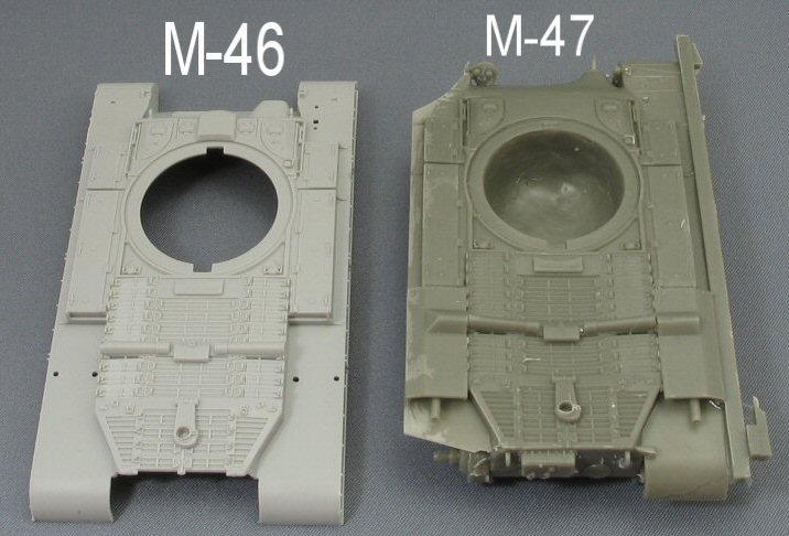 Since the M47 is a development of the M46, I also compared the Model-Miniature hull to the Trumpeter M46 parts and guess what? When looking at all the details, it became obvious that this, once again, is a copy of an assembled Trumpeter hull, slightly adapted by deleting the rotoclone blower between the hatches to resemble something that looks like the glacis of the M47. However, the glacis on a real M47 (see below) lacks the prominent ridge of the M46 and therefore has a much sharper slope, a feature that Model-Miniature has failed to capture. Additionally, the details on the resin hull are notably softer than these on the original plastic one.
