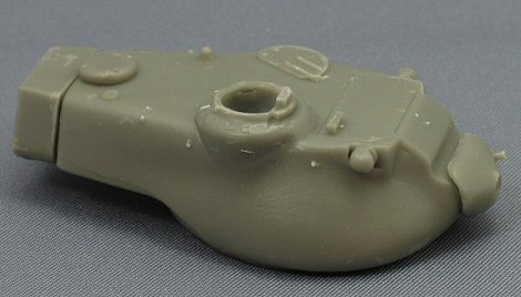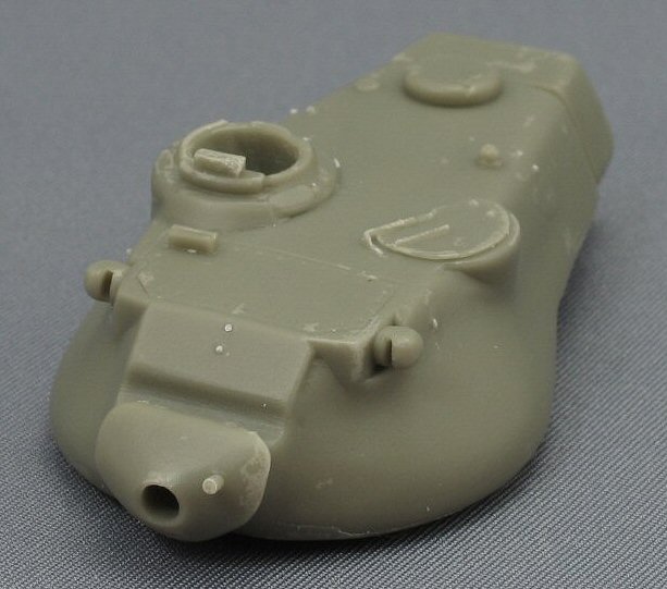 The turret In the end, the only major part in this kit that was originally mastered by Model-Miniature is the turret, and you immediately see the different approach. The general shape of the turret looks correct, but apart from that, it is very naked. The texture is much too smooth, doesn’t look like a cast steel turret at all. The few details on the turret were all broken when I’d got my kit (like the small lifting hook in front of the turret and the antennae base).
