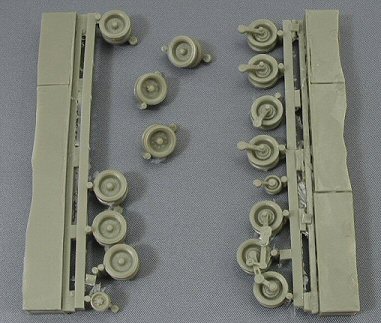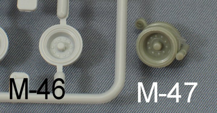 Besides the hull, you can also see that the Model-Miniature M47 road wheels are, once again, copies of the Trumpeter ones, but already have their torsions arms glued to them. |
