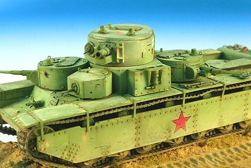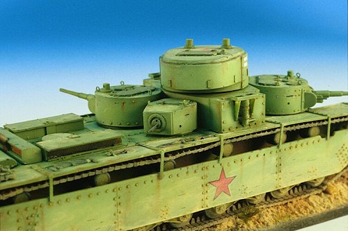 Being an aficionado of the Great Patriotic War (a.k.a. Germanys WW II Eastern Front) conflict of 1941-1945, this five-turreted, 9.7 meter (31 foot) long, 3.5 meter (11.4 foot) tall, behemoth of a tank has long been one of my favorite subjects. To assist the modeler with some potential diorama ideas, I offer a little historical perspective first. Historical information will influence your display markings, painting and weathering that you choose. For example: no T-35s entering Berlin in 1945 with a IS-2 next to it!