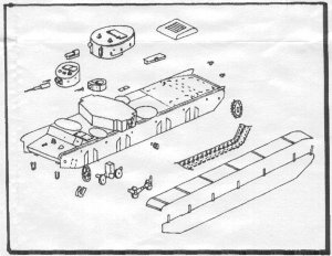 More information and opinions on the kit and casting will come with the progressive construction of the model described below. The scans below do not include all the small parts, such as all of the 16 main bogie parts and 14 return rollers.