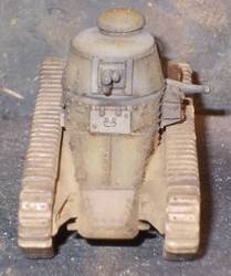 I chose the non-Japanese option with this kit. As there are no decals included, and as there is not too much info to be found, except about the specimen kept in a museum in Sweden, I followed the markings and colors given in the drawing that comes with the set (shown above). I have no idea which country this tank belongs to, or if it is even based on a picture of the real thing, but it looked good. I painted the model in Vallejo acrylics, mixing browns and greens and found the decals in a GHQ sheet for 1/285 wargaming tanks. The latter are slightly rough, and not perfectly aligned, but this did not bother me, as I guessed the tank was being tested by a potential customer who applied a temporary reference number. I decided to put the number on the turret instead of the hull, as the position on the Modell Trans drawing seemed unlikely because