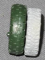 This wheel set is a vast improvement over the wheels provided in the Academy kit, even after the minor cleanup that the parts require. The holes for the axle stubs also need to be driled out a bit deeper, but that's about all it takes. |