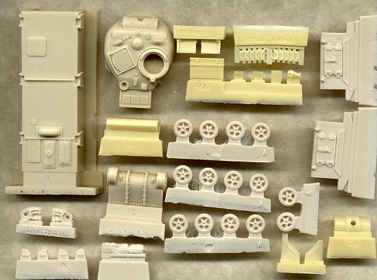 Some of the parts are provided in cast metal, such as sprocket wheels and hatches, and the 17 pdr gun barrel is a beautiful turned-aluminum piece. All of these parts are very well detailed and cast.