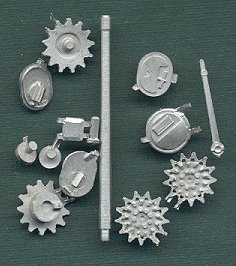 Some of the parts are provided in cast metal, such as sprocket wheels and hatches, and the 76mm gun barrel is a beautiful turned-aluminum piece. All of these parts are very well detailed and cast.