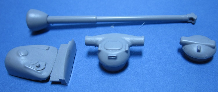 The sprockets... The road-wheels... The idler connector... The hull components... The gun... The mantlet... The rangefinder... The commanders cupola... The exhausts...