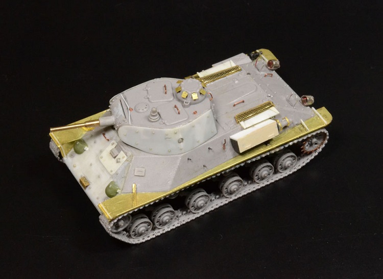 Finally the lights and the base for the jack, again nicely detailed parts... Well that is the model in all its component parts, having handled all these parts I can say, unreservedly, that they are some of the best castings I have handled. (I have done a lot of resin modelling so this is not hyperbole.) They look and have the feeling of quality, lots of little detail parts and fine photo-etch. This is not a model to be tackled by anyone who has little experience of this medium, but it will reward careful building and a really nice little model can be produced from the contents of the box. I have no qualms in recommending this model to you all. Reference: https://en.wikipedia.org/wiki/T-50_tank
