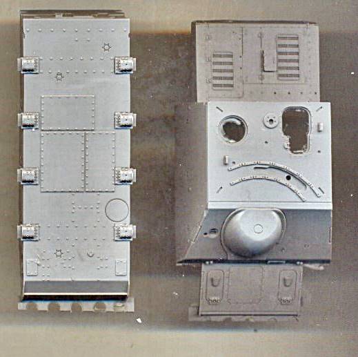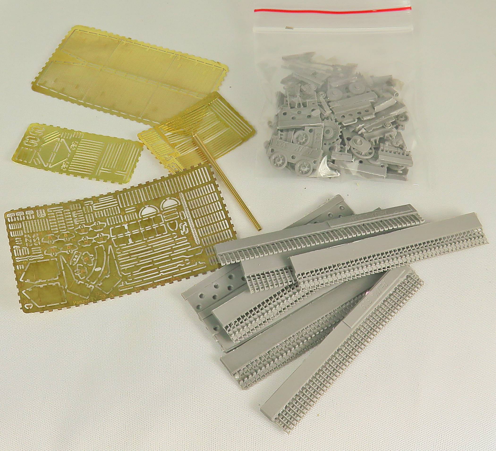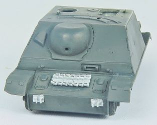 The resin parts are nicely cast, but, at first glance, not without the occasional fault. For instance, the rear upper hull plate has a waviness to it. Sanding it flat would be an option if it wouldn’t remove the details in that area. Bending after heating in warm water is a better option; it took me two minutes. Some panel lines on the engine deck might benefit from rescribing. (Perhaps the molds are already getting worn.) There also was a rather large air bubble on the gun housing, covered by very thin layer of resin that didn’t stand up to any handling. It’s in a partially hidden spot and rather easy to fix, though.