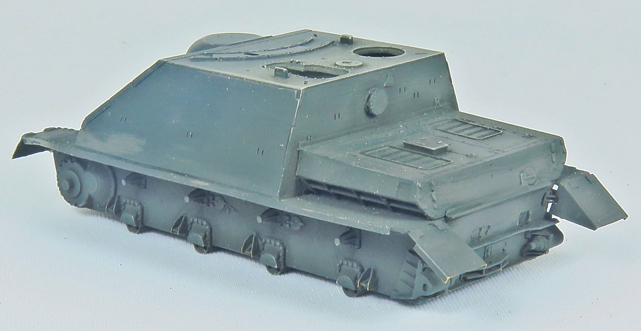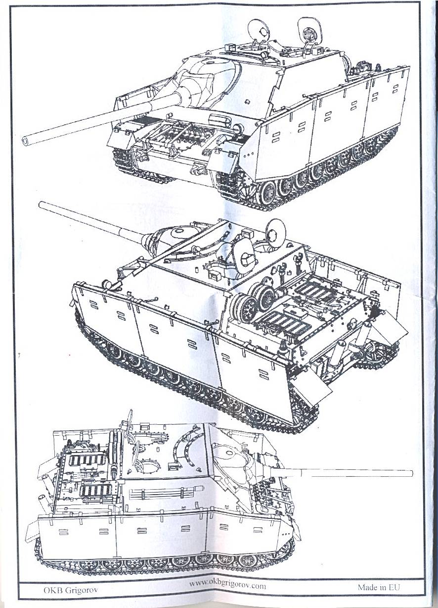 | History There were basically three versions of the vehicle we, modelers, know as the “Jagdpanzer IV”: two versions by Vomag with resp. an L/48 and an L/70 75mm gun and a version by Alkett with the same L/70 75mm gun. The two former used a modified Panzer IV chassis, while the latter used a mostly unmodified Panzer IV chassis, making it substantially higher than the other two. It is this latter vehicle, technically known as Panzer IV/70(A) and colloquially known as “Zwischenlösung” (Interim solution) that we are being offered by OKB Grigorov. At the time of release, it was (as far as I was aware) the first time that we were being offered this vehicle as a complete kit in this scale, although conversion sets had been available for a while from different manufacturers. Soon afterwards, UM also released their own kit. A point of note is that the operational doctrine of the Wehrmacht did not consider this vehicle to be a Jagdpanzer, but to be a substitute for a main battle tank, more specifically in the II. Abteilung of a Panzer Division when insufficient Panthers (carrying the same L/70 gun) were available. (This means that the use of “Self Propelled Anti-Tank gun” on the boxtop isn’t entirely accurate.)