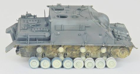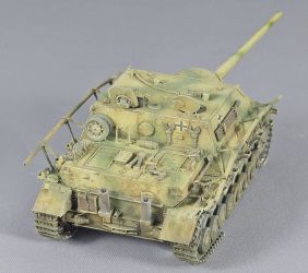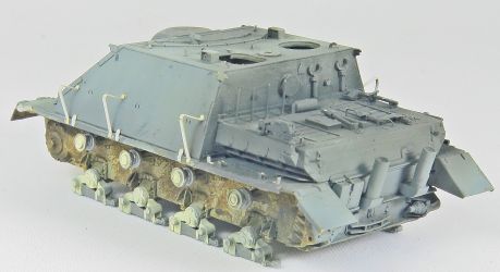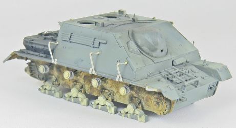 effect. It's fiddly, to say the least. The kit doesn't provide an antenna, or doesn't mention that one needs to be added to the antenna mount on the left rear side of the hull. As the kit was going to represent a vehicle captured by Soviet troops, some battle damage was simulated. Decals came from the spares box and the paint scheme is not based on any particular vehicle.