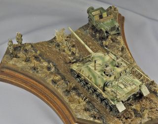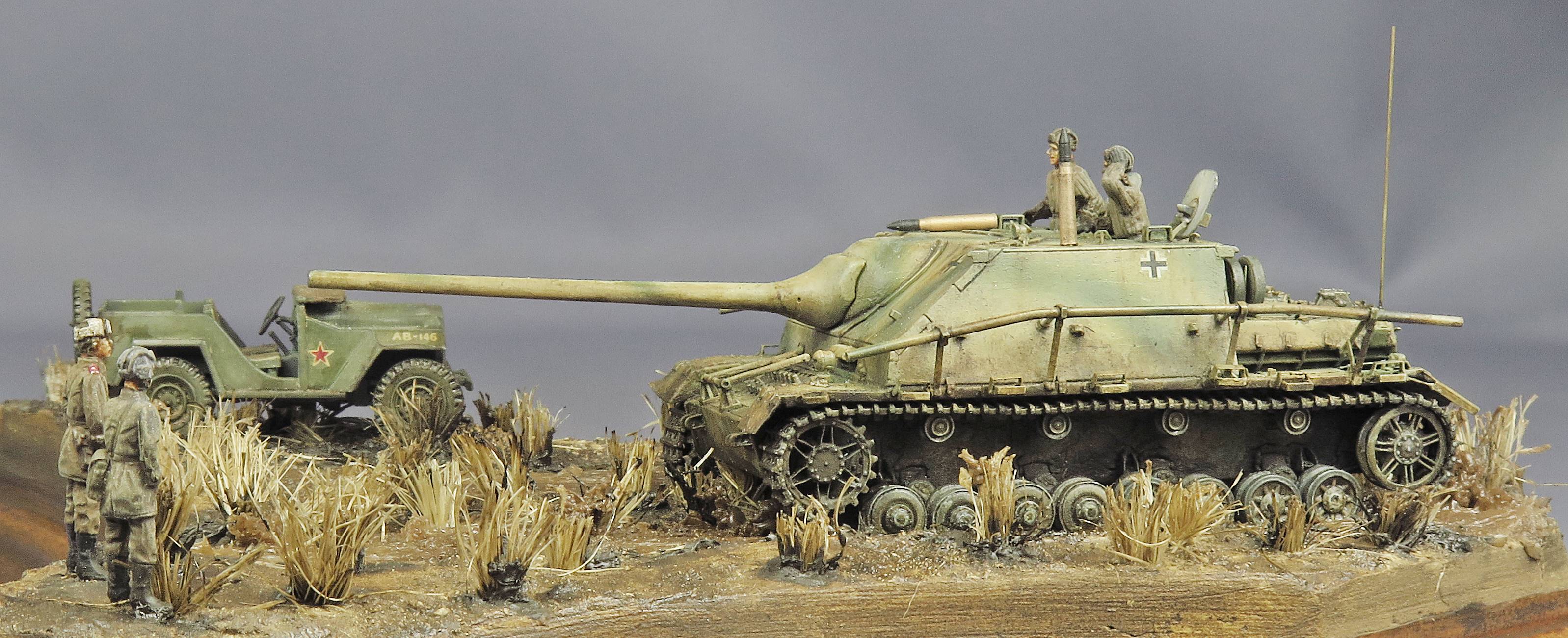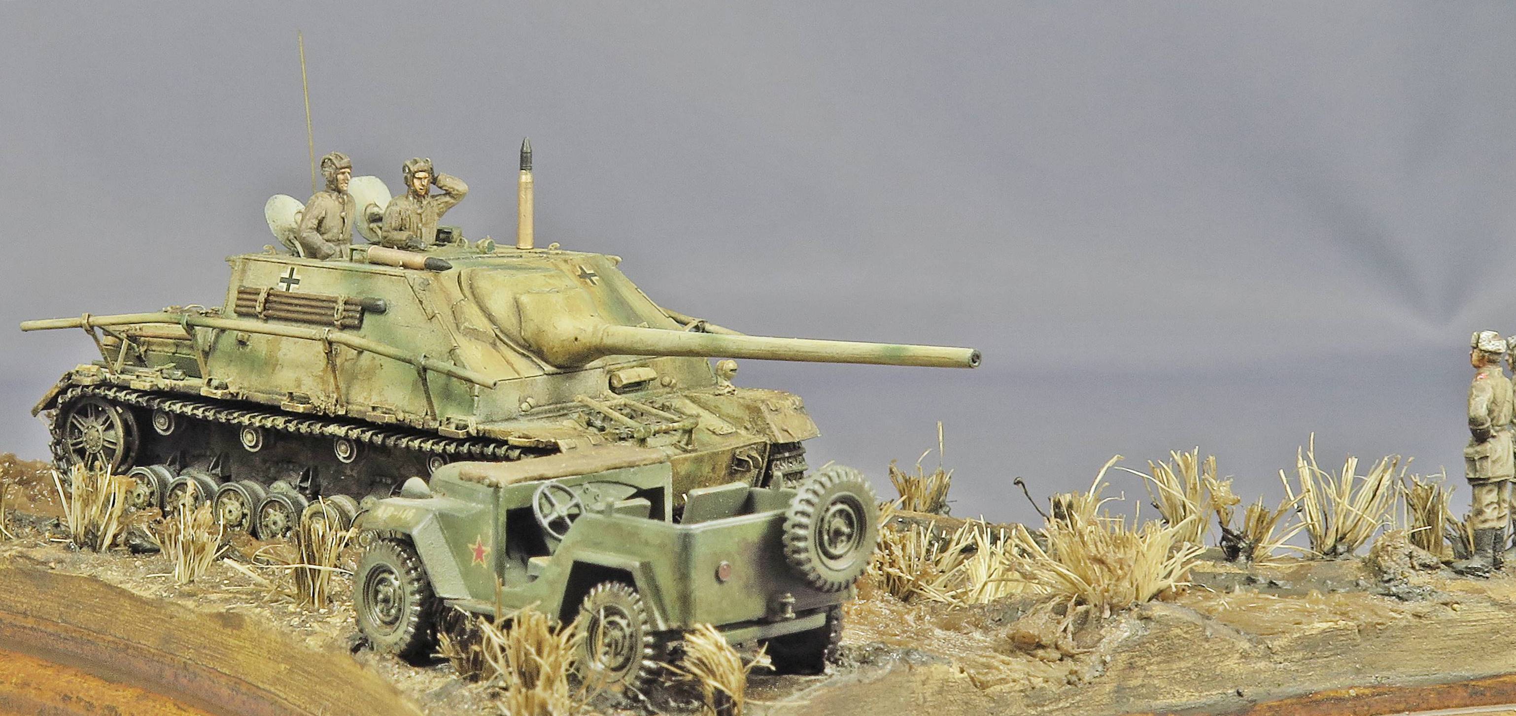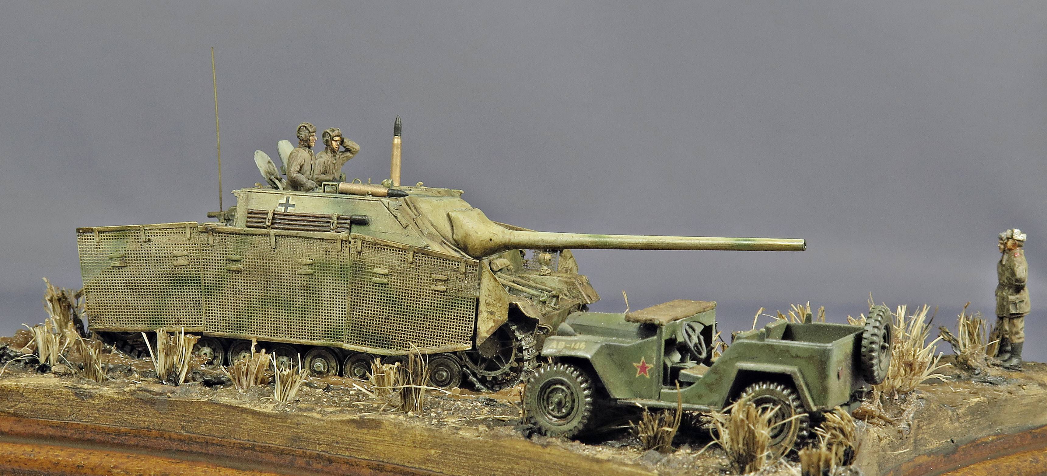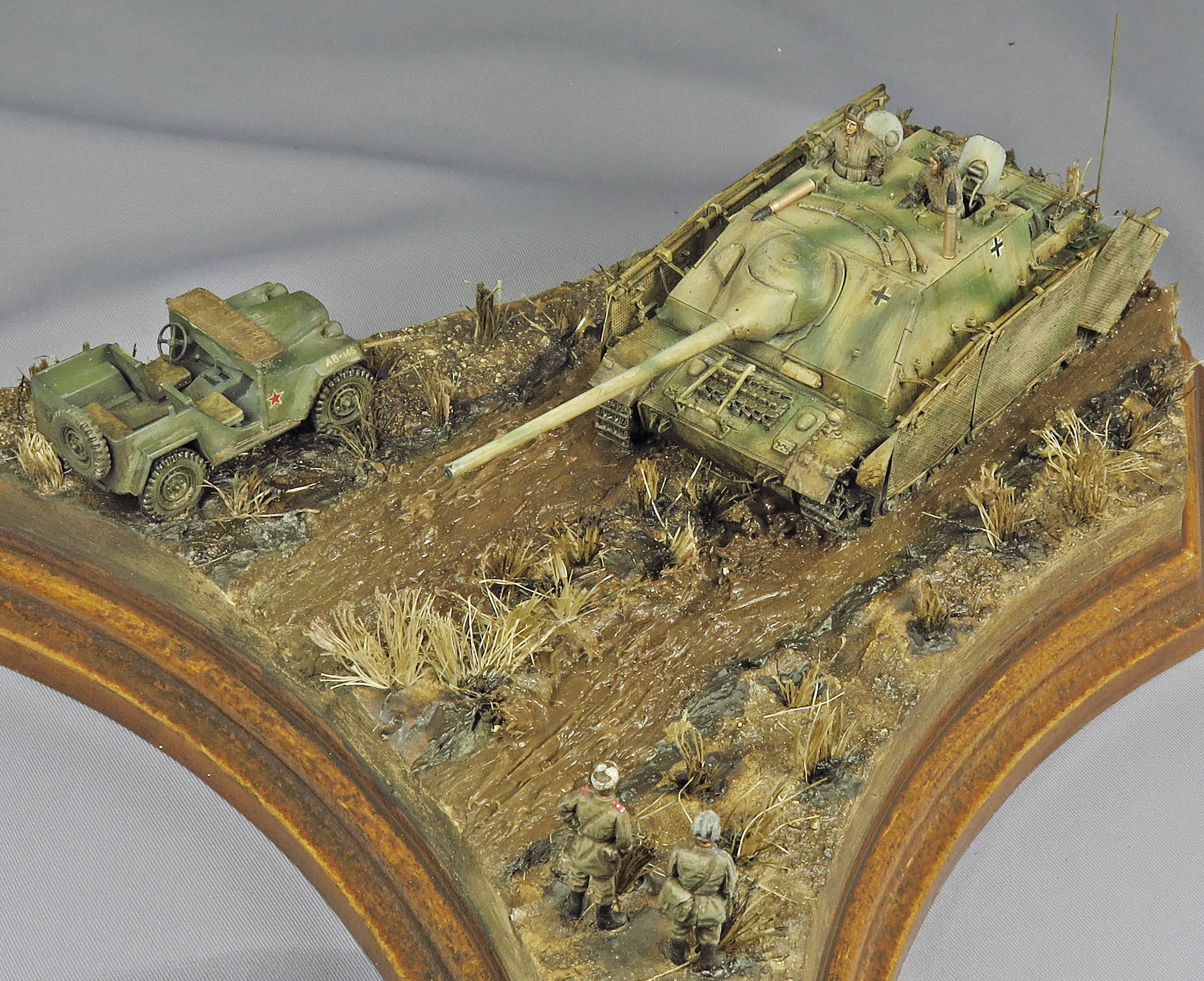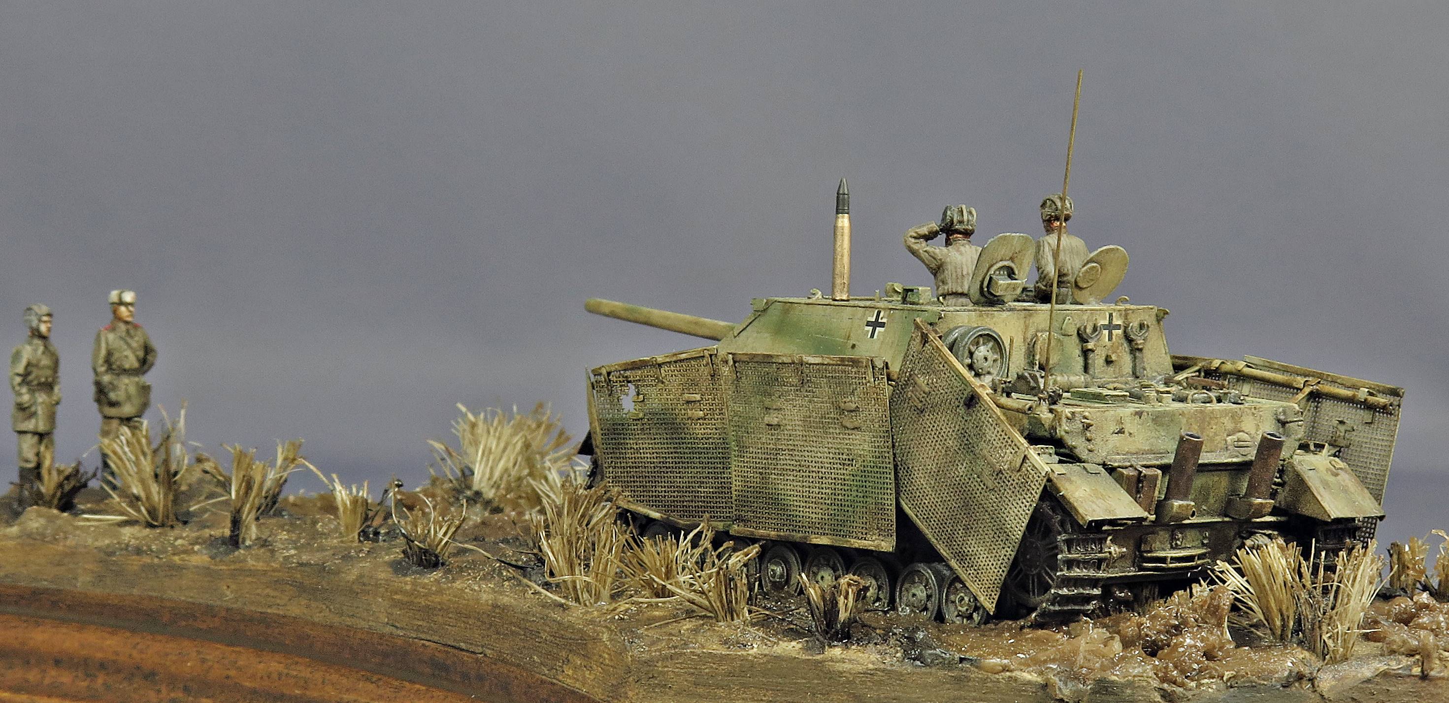 Diorama For the diorama I also used Milicast figure set F22 and an S-Model GAZ-67B. The diorama was initially finished without the Schürzen to allow access to the groundwork.
