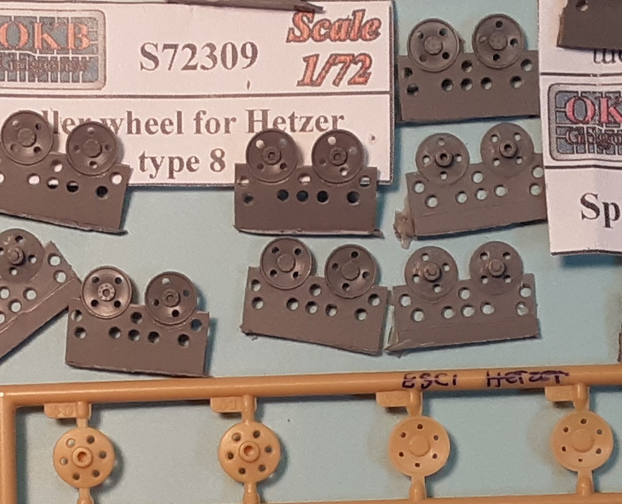 OKB’s S72309 compared with the 6-hole idlers with the ESCI Hetzer