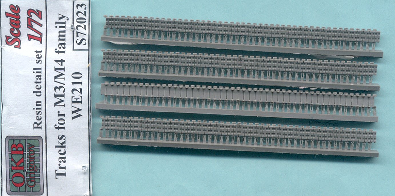 This aftermarket track set has four lengths of 110-mm long gray resin track for a total of 440-mm of track. The average 1/72 scale M3 and M4 Medium tank uses