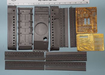 resin parts, including six 7.5-cm lengths of track, plus 104 etched