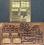 This sets contains two frets. One fret includes new intake grills for the engine deck and thankfully the headlight guards, the other fret covers a new splash guard for the glacis new fuel drum holders and the covers for the engine deck that are used during fording, these are mostly hidden and only come out for fording. Many thanks to OKB for the review samples |