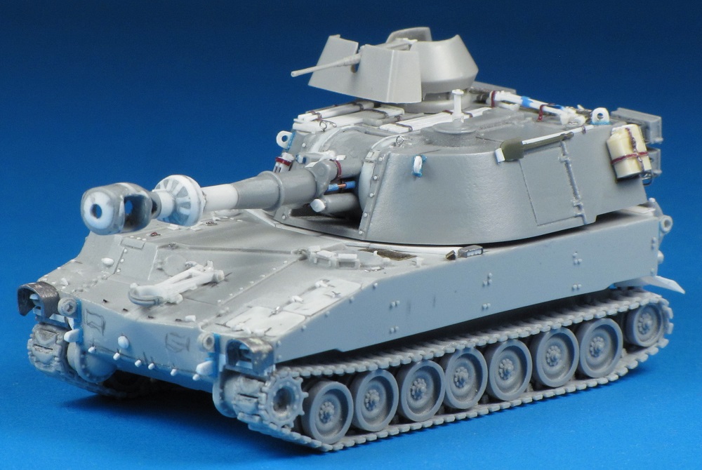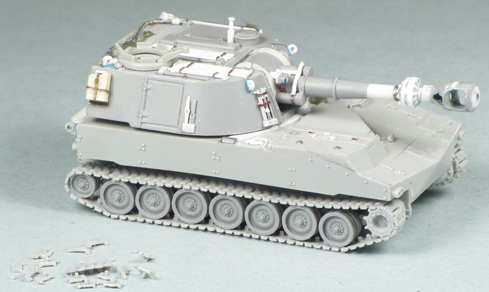 The M109 had 14 paired road wheels, and my kit only provided 12 pairs. I was able to obtain replacement parts after contacting Georgi at OKB Grigorov.