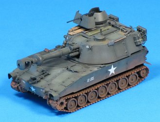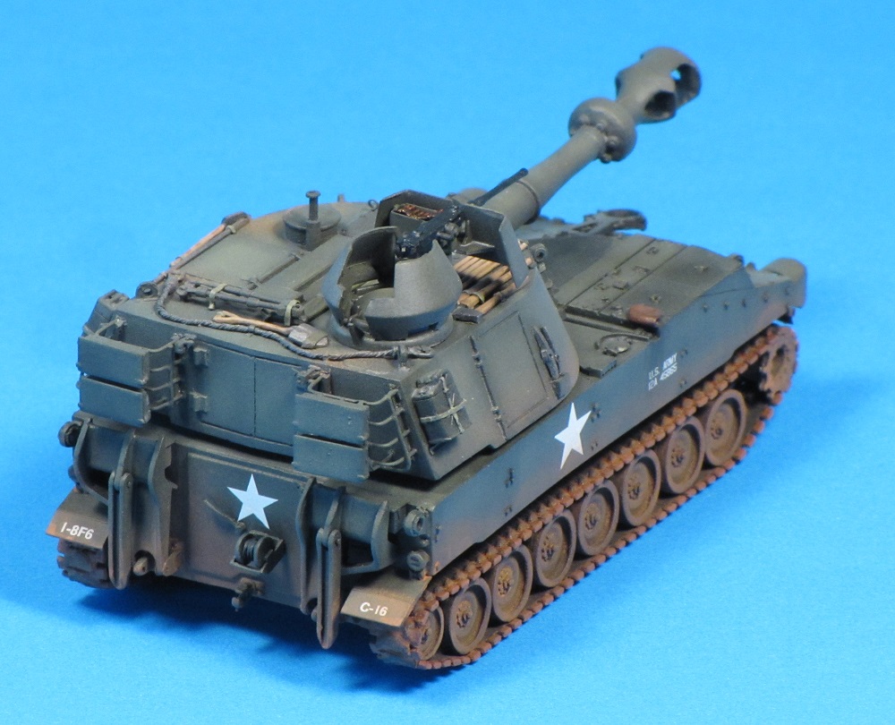 To add a little interest, I decided to depict an M109 with the standard commander's cupola replaced with an M113 commander's cupola, complete with ACAV gun shield.