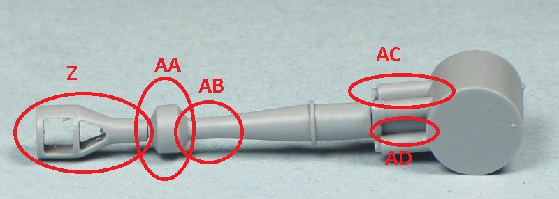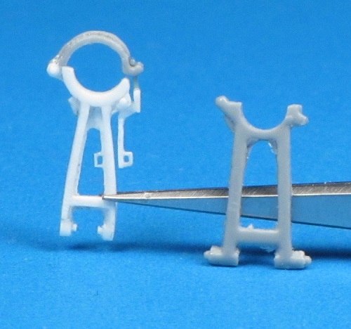 The barrel travel lock is provided in two parts in the OKB kit, but the parts lack detail of the locking mechanism and the main support is the wrong shape. I