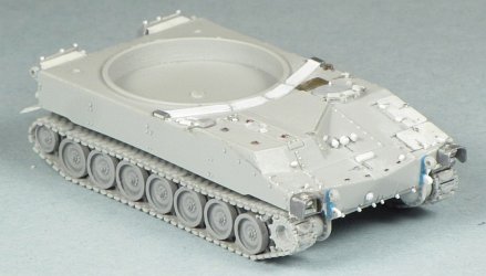 I robbed this assembly from a Trumpeter M113 kit. I thinned the shield a little and added the gussets on the inside on either side of the gun slot. I used the