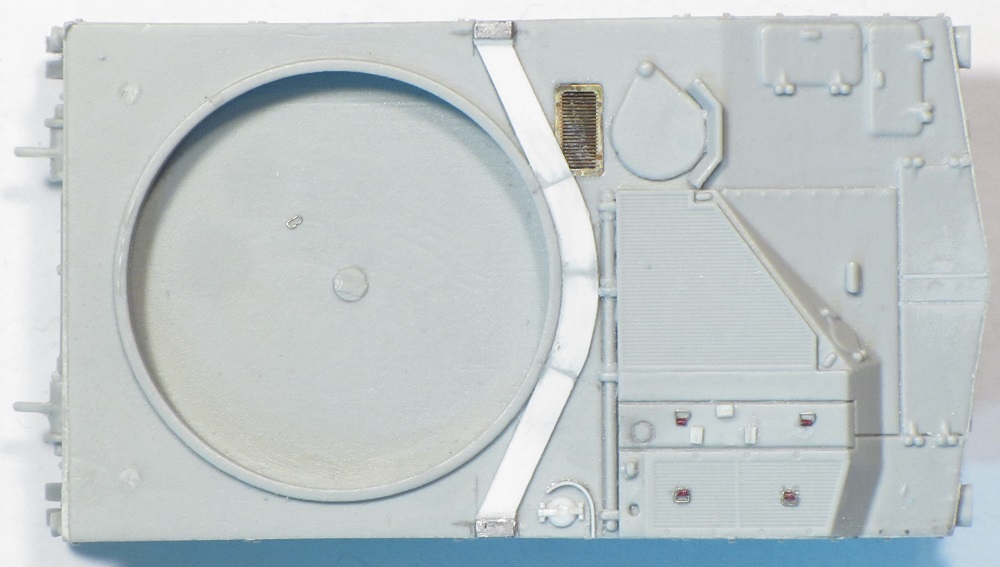 bulge on the drivers hatch, but later had to drill out the air bubble and fill it properly. The photo-etched grill under the flotation cover is provided in the kit.