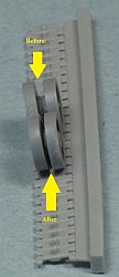 sections were overlapping the end connectors, so I reduced the gap between the wheels. This was easy enough to accomplish by removing the raised boss from the outer
