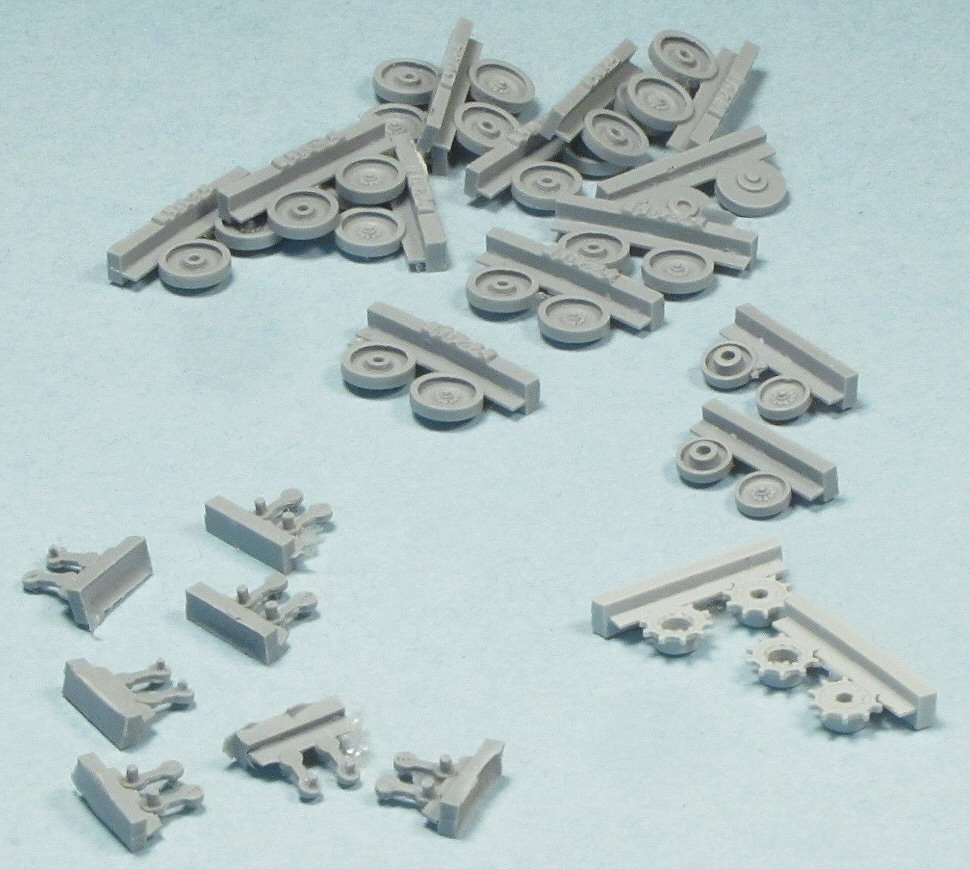 The tracks are provided as several lengths of straight track, to be bent to shape. The detail of the track links is a bit soft, and the track teeth show obvious