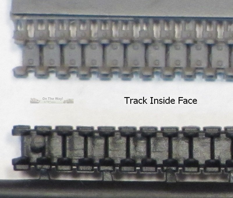 While the plain rubber block T16E1/T16E2 tracks seem to be the most common on WWII Stuarts, these tracks provide a nice alternative. The half mm error in the