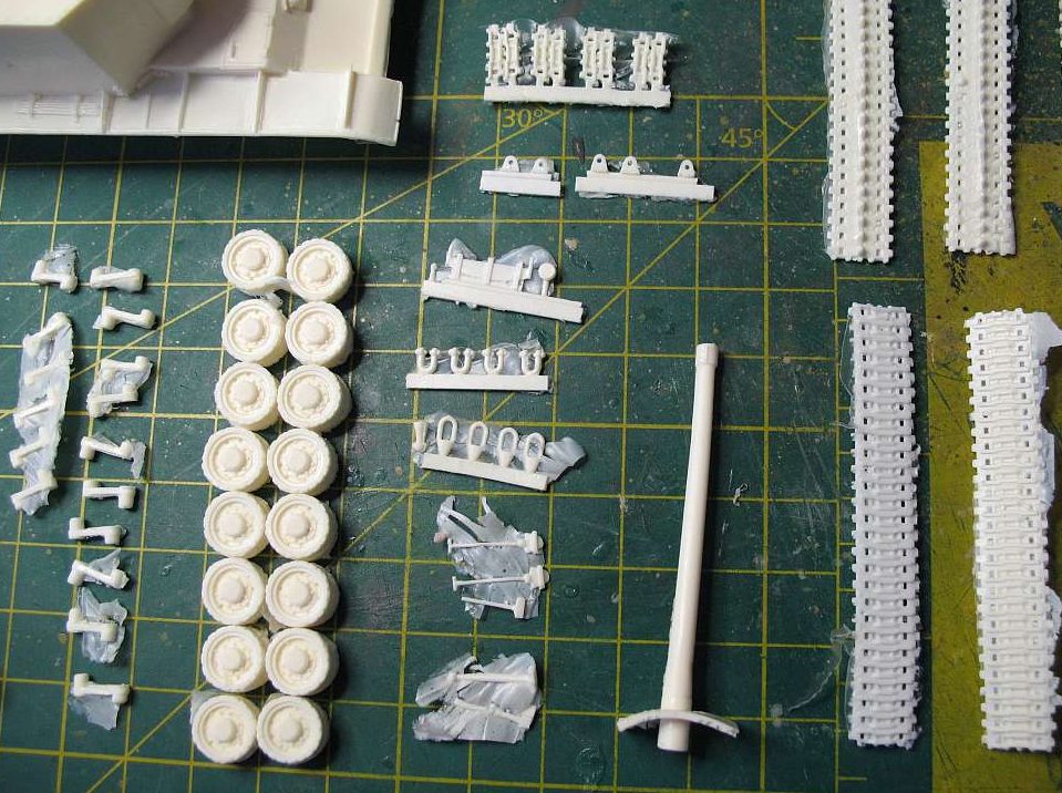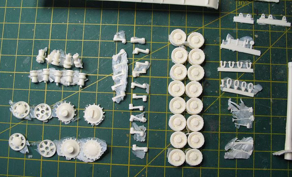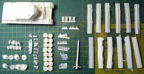 idlers, tracks, towing hooks etc. are separate. There are also some