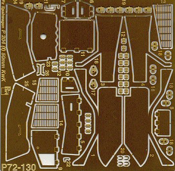 I've shown both sides of this set, as it is etched on both sides to provide the proper detail. This is a very nicely done set and will compliment the RPM Pz. Spähwagen P 204(f) kit perfectly. In addition to replacing all the armor plates of the gun shield and the fenders, it also provides the missing viewport covers for the crew compartment doors (in addition to many other details). Thank you very much to Rafal Niedzielski for providing this review sample. |