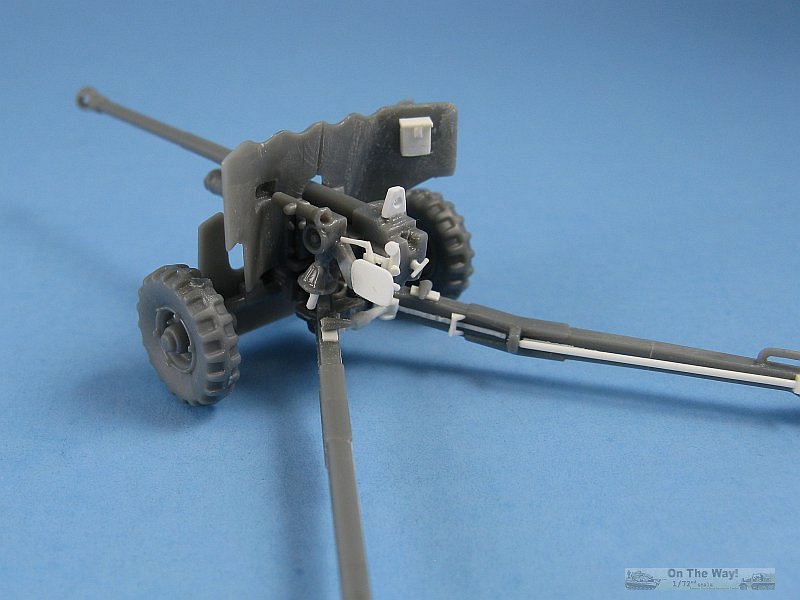 parts are overly thick which is especially noticeable with the shields. The model represents a 6pdr Mk.II gun on a Mk.I carriage. A quick measurement of the barrel