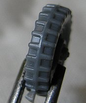 found in a variety of 6pdr period photographs. As you can see the tread pattern on the kit's 6pdr tires match nothing I've found yet. They do have a passing