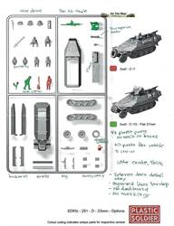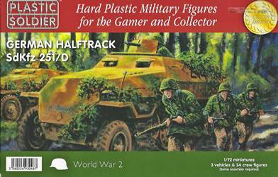 models in this scale also available are: Kit WW2V20003, German Sd.Kfz. 251 Ausf. C Halftrack, which includes three complete easy to assemble 1/72nd scale Sd.Kfz 251/1 or Sd.Kfz 251/10 Ausf. C halftracks. Each of the three sprues comes with seven crew figures and a variety of gear. Conclusions The kits will build into fine wargaming models as is and look more rugged for handling than the small scale Dragon and Hasegawa kits of this vehicle. Being mostly a display modeler, I am tempted to judge this model more harshly than I perhaps should considering the wargaming market it is sold for (no offence to wargamers, it is just that the needs are different). With some detailing and good painting, they will make descent display models. This kit was purchased by the modeler.