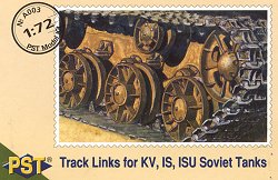 ![]() This is an easy review. This set, which was only recently released, is simply a single sprue of styrene plastic link & length tracks for the KV, IS and ISU series of tanks. These are the same tracks that are included in all the PST kits, and can be used as replacement tracks for the Roden IS-3, the ESCI KV-1, and other resin kits and conversions. I consider these tracks to be pretty decent, though not as fine as the newest tracks by Revell, UM, etc. The detail on the inner surfaces in particular is very nice, but the individual link detail on the outer surfaces is overly simplified. However, the track that is most visible on the completed models is the portion wrapping around the idler and sprocket wheels, and these are constructed with individual links, which look much better than the single-piece lengths pictured below. So all in all, these tracks do look very good on a completed model. As an aside, I think it is a great idea for a manufacturer to release small upgrade sets such as this one. If they have an item in their kits that is superior to others in the marketplace, it would behoove them to do as PST has done here, and make those items available separately. I can easily think of a dozen examples of wheels and tracks in particular, from a variety of manufactuers, that would be warmly welcomed by modelers if they would be sold separate.