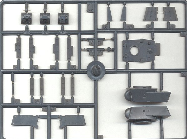 This kit is essentially the same as the KV-1, but with a new turret sprue replacing the KV-1 turret sprue. All other parts are the same as the preceeding kit.