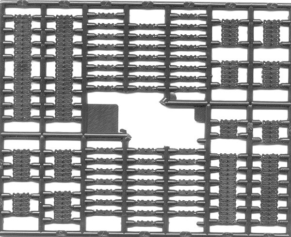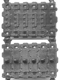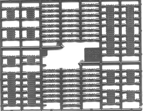 The tracks (pictured above and below) are a mixed bag. In some respects, they are better than the ACE tracks, such as in quality of the moldings, and detail on the insides of the track, but they are also not as good as they could be. On the lengths of track in particular, there is detail missing on the raised portions of the outside of the links, but the individual links look much better. Since mostly the individual links will be the only track visible on the completed model, this may not be too much of a problem. But if the upper track run is even partially visible, it may be necessary to carve some additional detail into each link.