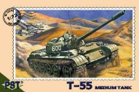 I have long been a fan of PST's kits, as well as of the T-55 tank, so the announcement of these two kits really had me excited for many months. I have owned the ARMO T-55 kit for several years, but have never gotten around to building it, because I have read about some construction hassles. I also have the ACE T-55 kit, and built that one recently (see Review), so now that I have received these two PST kits, my collection is complete. I would have liked to do a side-by-side comparison of all three kits, but since I already built the ACE kit, we'll just have to settle for individual reviews.