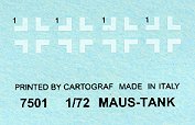 The decals are good and very thin, although there are only four "Balkenkreuze", but this is completely adequate, since the real Maus stayed a prototype and was never in use. Altogether this is a good kit which shouldn't make too much trouble. It's fast and easy to build and therefore also suitable for beginners.