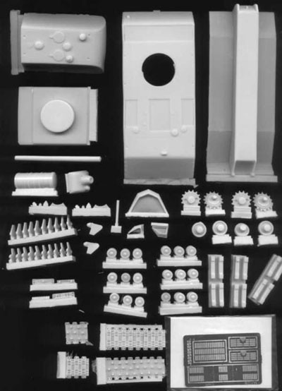 All of the parts are well-molded, and look to be easily removed from their sprues. Unfortunately, the hatches are molded closed. There is also very little exterior detail. The drawing on the box cover shows headlights, towhooks and other details, but none are included (I'm not sure if the real vehicles were outfitted with these accessories, but I think that they were). The engine deck screens are provided with etched brass parts.