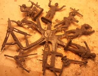 contains "2 pieces kit tank" and "11 figs and MG team/flag/posters".