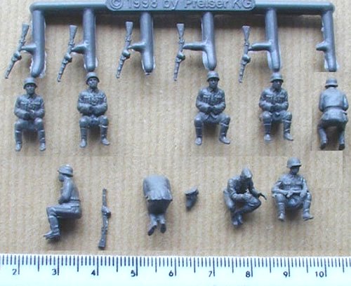 On global, the new Preiser sets are excellent in terms of moulding and sculpture, a great improvement comparing their earlier sets, like the mechanics. Moulded in a medium grey plastic, without almost no flash, these are wonderful. The multipose approach, similar to the one from Airfix in 1/32, way back some 25 years, is a very good one, so you could build almost an infinite variation of figures, swapping the heads and torsos, even if this could be tricky.