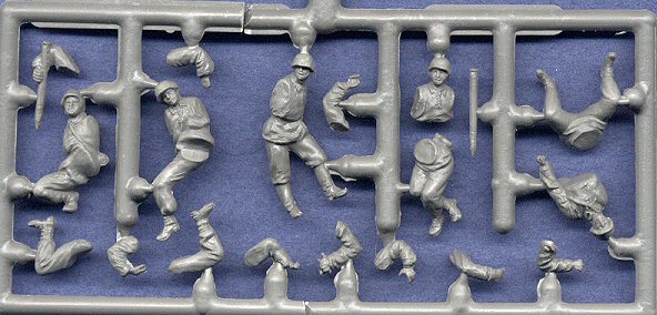 ![]() This small set contains only five figures: enough for a single Pak 40 gun crew. This set is probably the weakest set I have seen from Preiser, in that the figures have fairly indistinct uniform and equipment details, and there are so few of them. I think that this lack of detail was due to a trade-off between detail and realistic poses. The figures are all in very life-like and specific poses, and their use for anything other than a gun crew will be limited. But that is not to say that these are bad figures, which they certainly are not. For the same reasons that the detail is softly molded, it will also be very hard to see, so with a good paint job, as well as perhaps some individual kit and accessories from Preiser's earlier sets, these figures should turn out excellent.