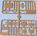 It's a short-run kit but a huge improvement on the MAC Steyr. Some pieces are very nicely-detailed, like the grills on the hood sides. Other pieces, like the headlights, are chunky and soft on details. All the pieces have very large attachment points and will probably require a razor saw and some careful clean-up. Some pieces have a small amount of flash but nothing too bad except for part of the exhaust, typical for this kind of kit. The molds must have been polished because many pieces have a mirror-like finish on them. Normally I don't prime my models, but I might use some Mr. Surfacer on this one to make sure the paint sticks. The interior of the cab is adequate, with a dashboard and steering wheel. The floor has some pedals molded in, but no gearshift. The doors are molded together with the side walls, similar to the Academy and MAC Opels, making it difficult to open the cab up. Probably pieces would have to be scratchbuilt, since the doors are so thick and have no interior detail. Another minor problem are the knockout pins on the doors. They are on the inside and will be easy to remove with an Xacto, but the exterior sides have dimples. The jerrycan mounted on the right front fender also has a large sinkhole that pretty much destroys the piece. Better to replace it and scratch a new mount. There are a few other sinkholes, but are so minor that a drop of Mr. Dissolved Putty with take care of them. The truck bed is scribed but doesn't have any wood grain detail which is usually too heavy in 1/72 anyways. |