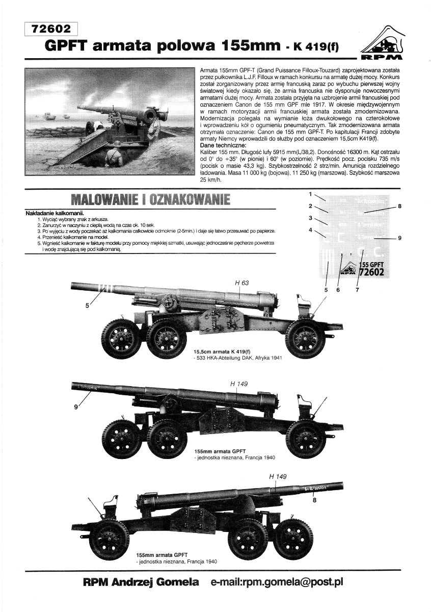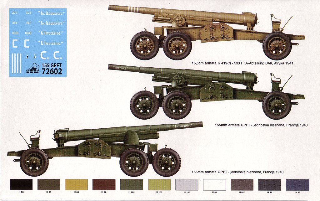 A small decal sheet is included. There are painting and decal options for 7 French guns in overall dark green (all for unidentified units, France 1940) or
