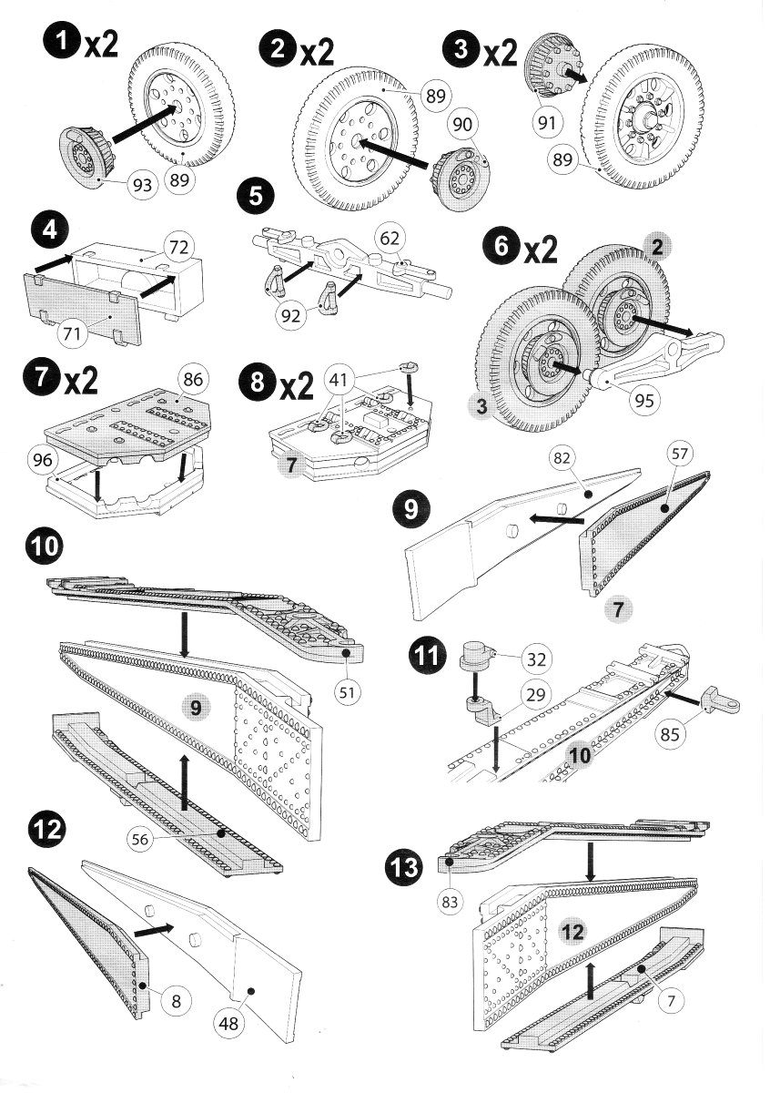 Steps 4, 5, and 7-16 are for the trails and pads. For the most part the instructions are easy to follow. Take care in Steps 11 & 14 to ensure that you have the pieces