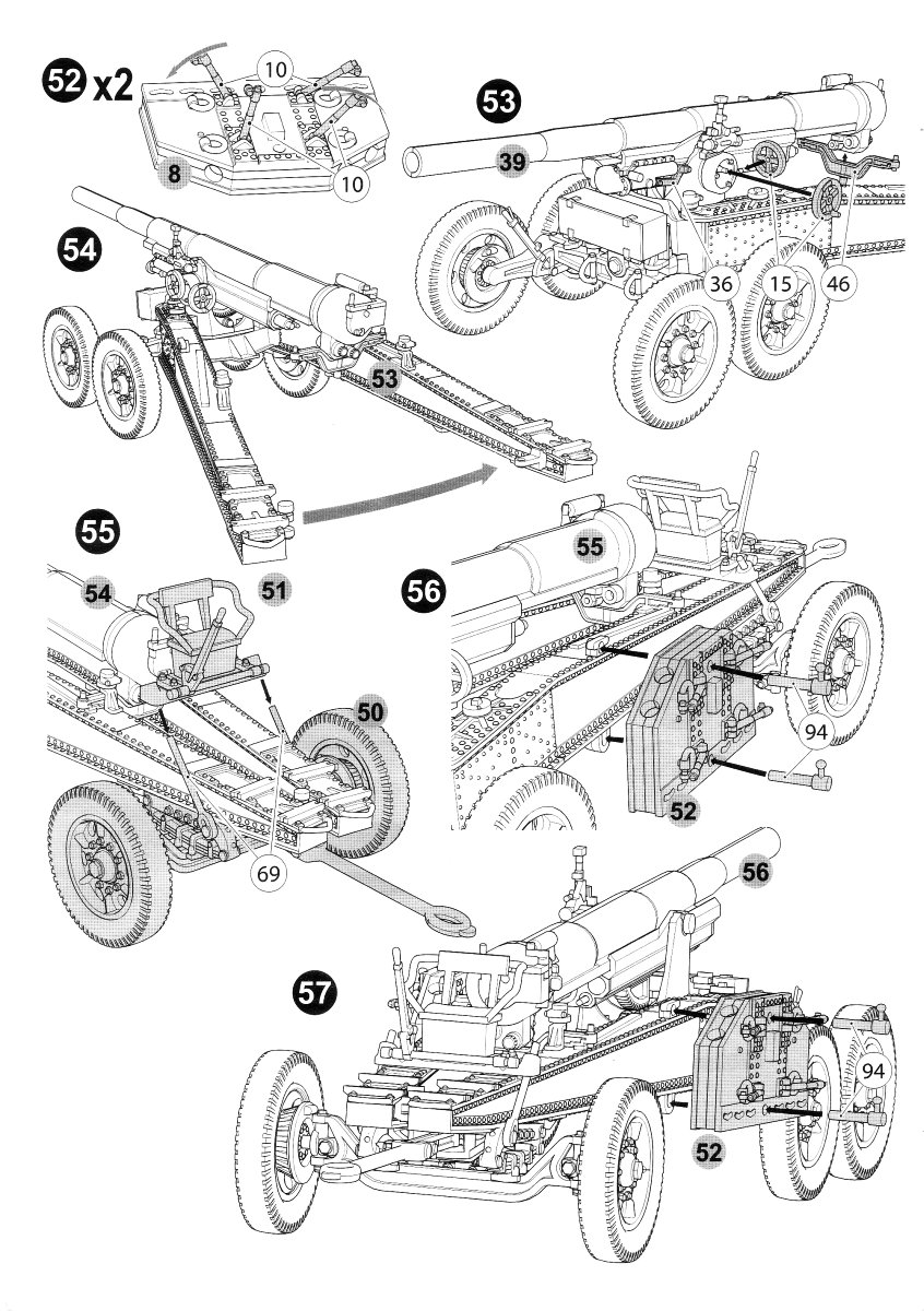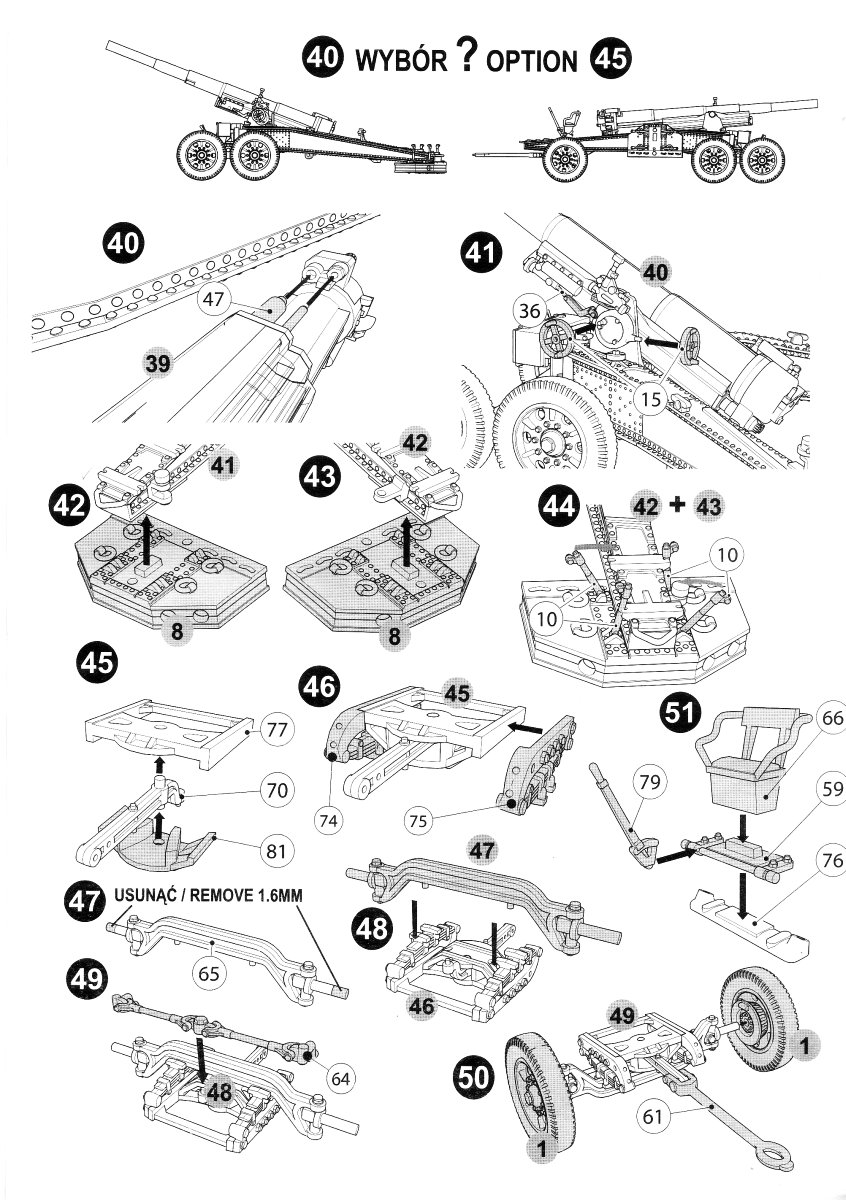point but after closer inspection I figured out that Steps 40-44 are to make the gun in firing position, while Steps 45-57 are to make the gun in travel position and