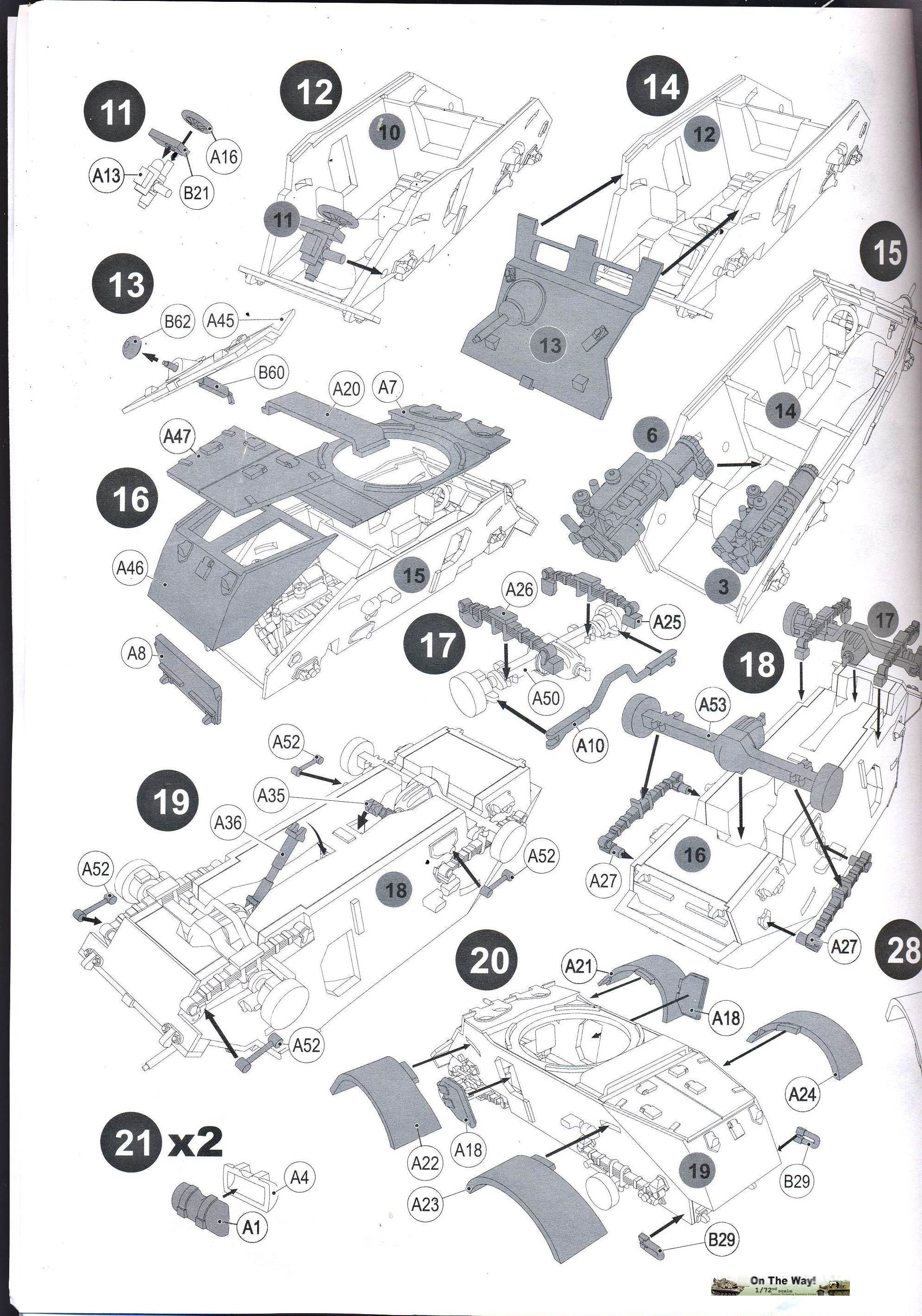 are multi-step. Unfortunately, parts are not numbered on the sprue,